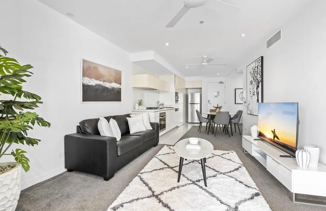 Este apartamento de 80 m², 1 Bedroom Study Unit In Broadbeach - No Parking - Q Stay Gold Coast, está situado a 4 km del Jardín Botánico Regional de Gold Coast, y a tan solo 550 m del Parque Kurrawa. Este apartamento acoge a los huéspedes con bañera de hidromasaje y una sauna y se encuentra a un corto paseo del Parque Pratten.